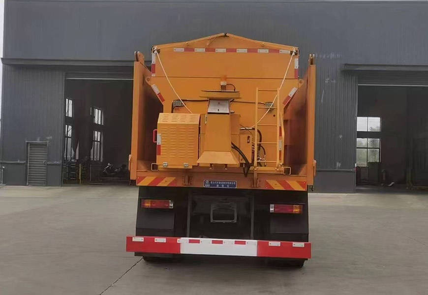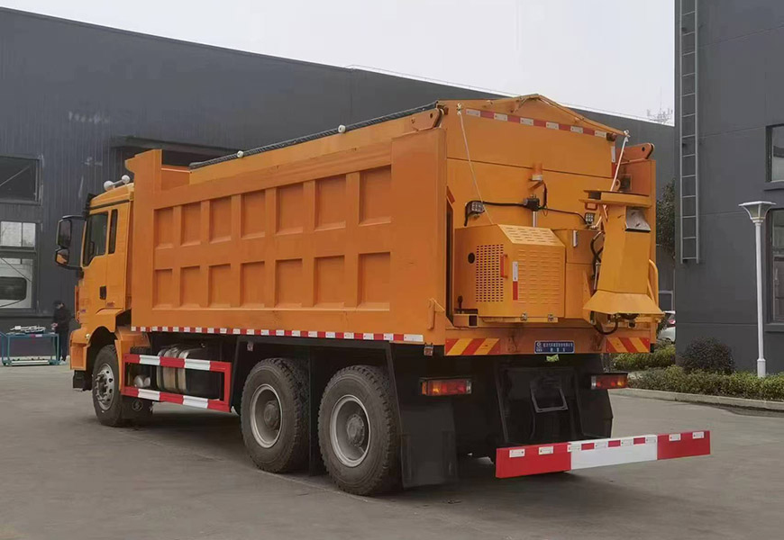 | 上裝配置 | 箱體采用優(yōu)質(zhì)碳鋼板,標(biāo)配10立方撒布機(jī)也可以選裝12立方,不銹鋼撒布機(jī)甩盤,撒布盤直徑550mm,撒布機(jī)采用 V 型料倉(cāng),結(jié)構(gòu)簡(jiǎn)單可靠,使融雪劑自動(dòng)落料,出料完全,無殘留,箭頭燈、篷布、過濾網(wǎng)、后爬梯。加裝3.5米雪鏟,可切換3.5米除雪滾刷(滾刷可選自帶動(dòng)力或者液壓取力)。 | ||