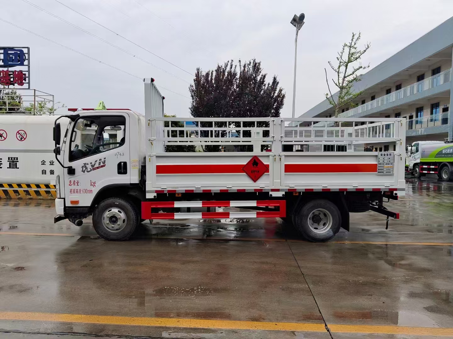 | 底盤配置 | 虎VN平頂單排駕駛室,錫柴CA4DB1A14E68,6GS42,270沖焊橋(速比4.875、輪距1640),速比4.875,7.50R1616層級(jí)真空胎,帶國(guó)產(chǎn)ABS,前盤后楔制動(dòng)器,空調(diào)+電動(dòng)門窗+中控鎖,氣喇叭,高架箱,80L鋁合金油箱,板簧3/7+3,前輪帶爆胎應(yīng)急裝置,前碰撞預(yù)警+車道偏離輔助預(yù)警,前下防護(hù),防飛濺擋泥板,排氣火花熄滅器,限速79km/h,北斗+GPRS行車記錄儀(帶視頻記錄功能),帶靜電拖地帶,NFH,危險(xiǎn)品專用底盤 | ||