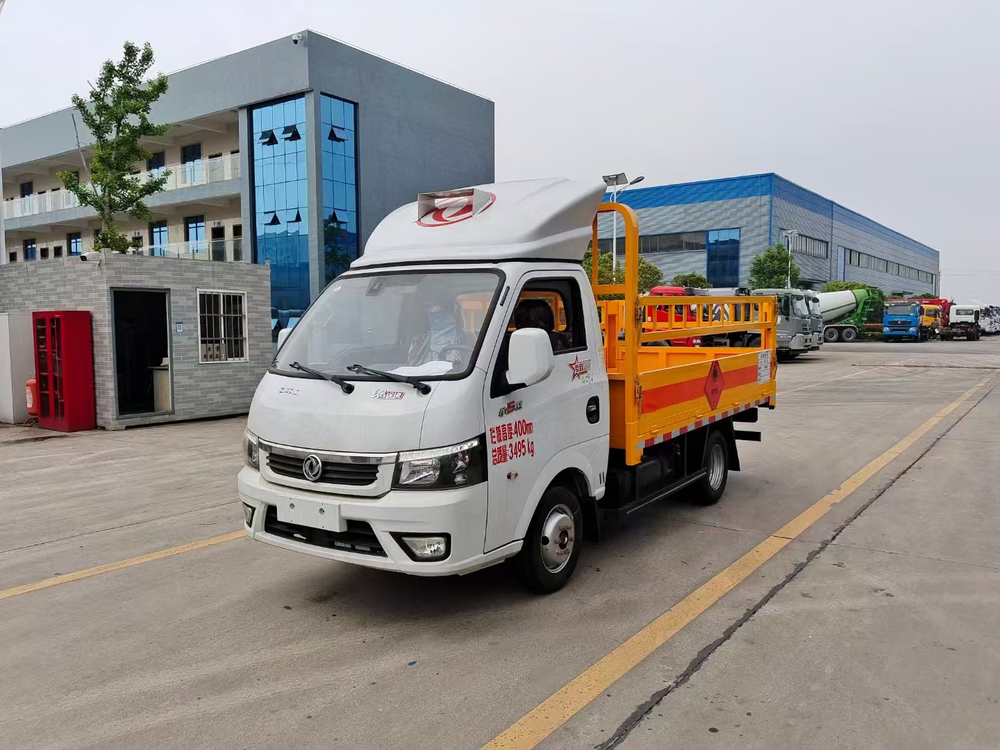 | 上裝配置 | 欄板可選裝高欄或者低欄,底板為3mm板材,底板上鋪有靜電膠皮,有靜電帶、滅火器、防火罩。整車國(guó)標(biāo)反光標(biāo)示及警告標(biāo)志。 | ||