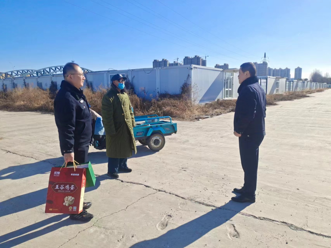近日,金盾公司黨支部書記、執(zhí)行董事范丙磊同志到方艙醫(yī)院駐勤點走訪慰問一線職工譚洪全同志,公司黨支部成員呂鵬、保安保潔服務(wù)二隊隊長朱孝輝陪同。