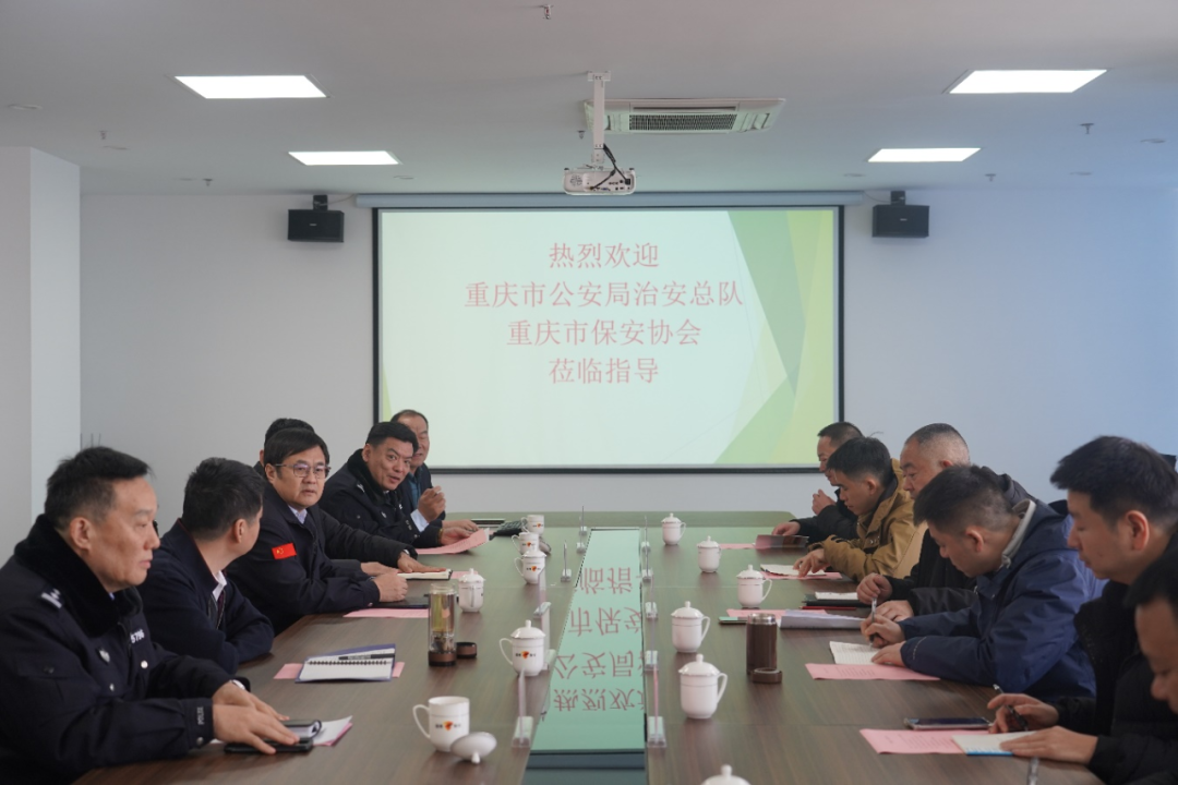 近日,重慶市保安協(xié)會會長李永成、重慶市公安局治安總隊保安監(jiān)管大隊副大隊長安硯坤一行6人,在山東省公安廳治安總隊二級高級警長高懷仕、山東省保安協(xié)會副秘書長趙愛民陪同下,到淄博市保安服務公司調(diào)研并進行座談交流。淄博市公安局治安支隊副支隊長、四級高級警長孫元乾,淄博市保安協(xié)會會長、淄博市保安服務有限公司黨委書記、董事長付志欣陪同考察。