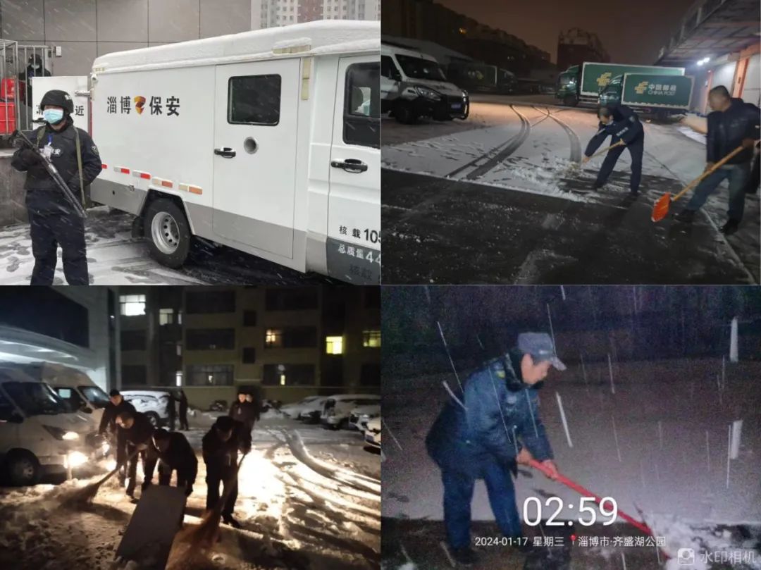 盡管寒風(fēng)刺骨,雪花紛飛,市保安公司全體員工提前到崗,把重點區(qū)域的積雪有序、高效的清理干凈,為人們的雪天出行保駕護航,讓社會感受到風(fēng)雪天淄博保安送出的一份溫暖。
