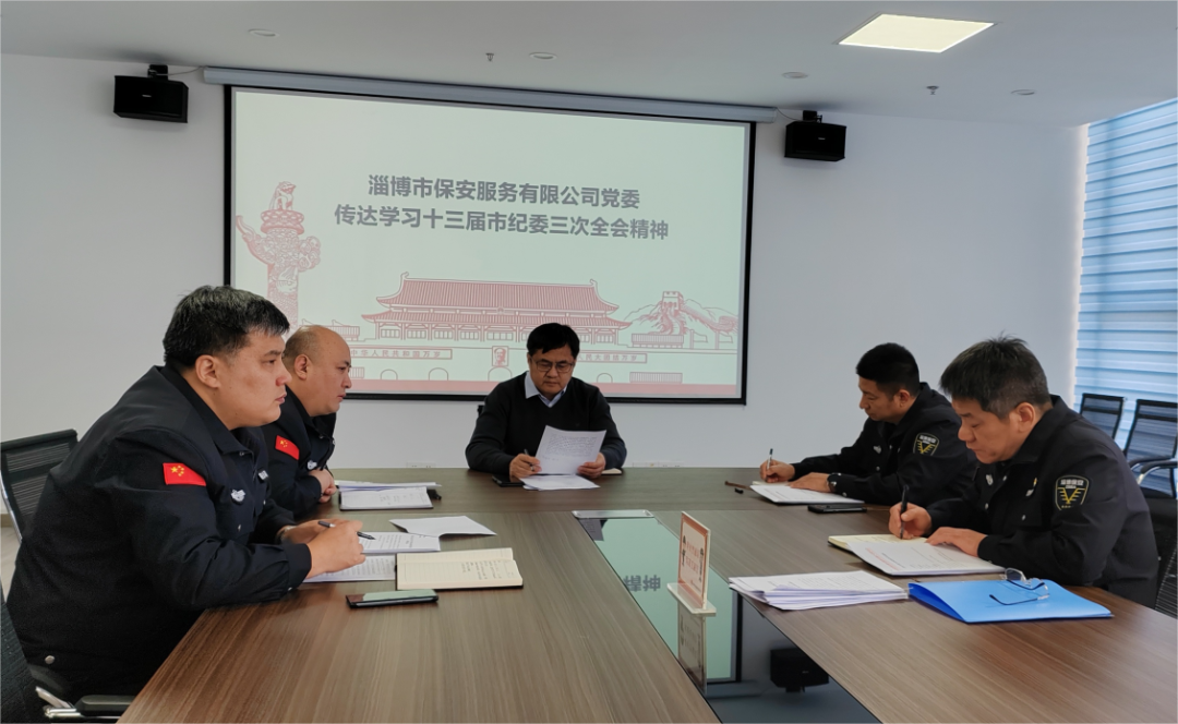 近期,市保安公司召開黨委會議,傳達學(xué)習(xí)十三屆市紀委三次全會精神。公司黨委書記、董事長付志欣同志主持會議并講話,班子成員參加會議。