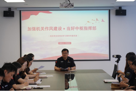 近日,按照黨紀(jì)學(xué)習(xí)教育工作安排,市保安公司黨委書(shū)記、董事長(zhǎng)付志欣同志為機(jī)關(guān)黨支部上題為《加強(qiáng)機(jī)關(guān)作風(fēng)建設(shè) 當(dāng)好中樞指揮部》專(zhuān)題黨課。