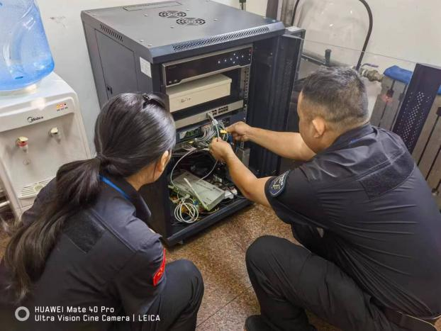 高青大隊組織值班室進行電力、監(jiān)控線路安全檢查