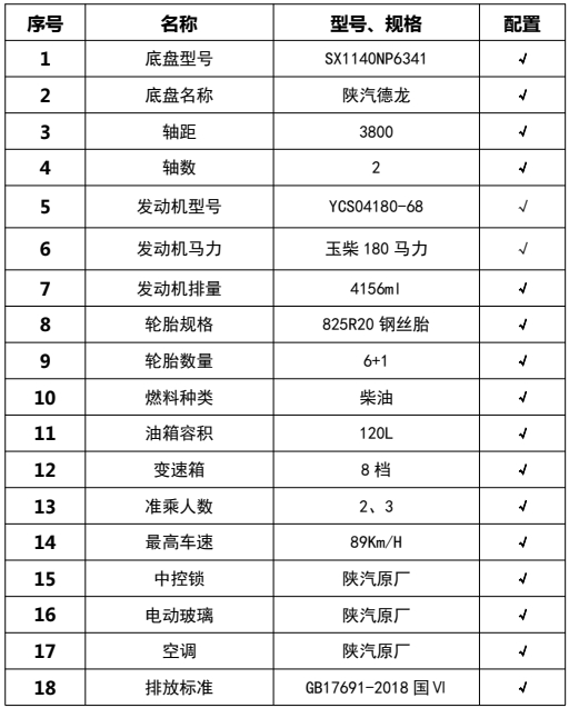 | 車輛主要配置 | |||