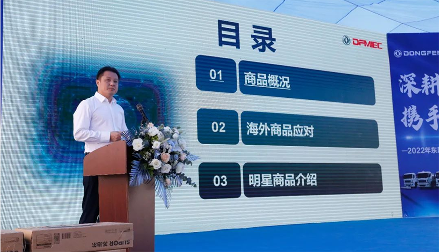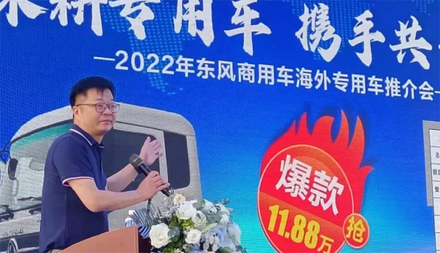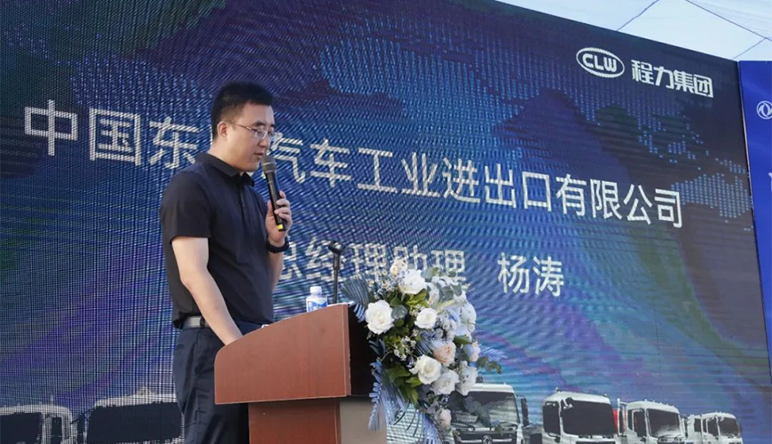 中國東風(fēng)汽車工業(yè)進(jìn)出口有限公司總經(jīng)理助理楊濤在活動中,做了重要講話。他強(qiáng)調(diào),首先要感謝程力集團(tuán)一直以來,與東風(fēng)公司全面戰(zhàn)略合作和大力支持,并向參加推薦會的來賓與銷售經(jīng)理表示誠摯的問候。
