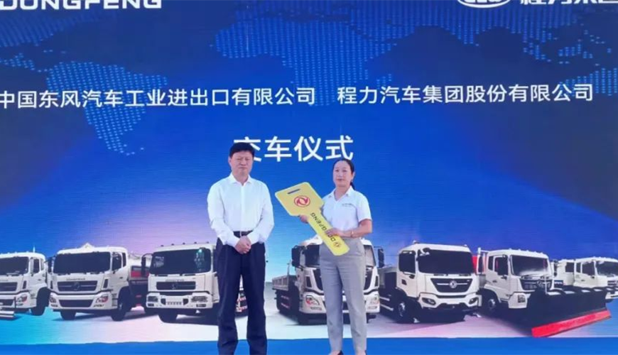 5月27日上午,陽光明媚晴空萬里,在風(fēng)景如畫花園式的程力新廠底盤大樓廣場上,程力汽車集團(tuán)與中國東風(fēng)汽車工業(yè)進(jìn)出口有限公司,聯(lián)袂舉行了一場隆重而又別開生面的“深耕專用車,攜手共出海”商用車新產(chǎn)品大型推薦會。