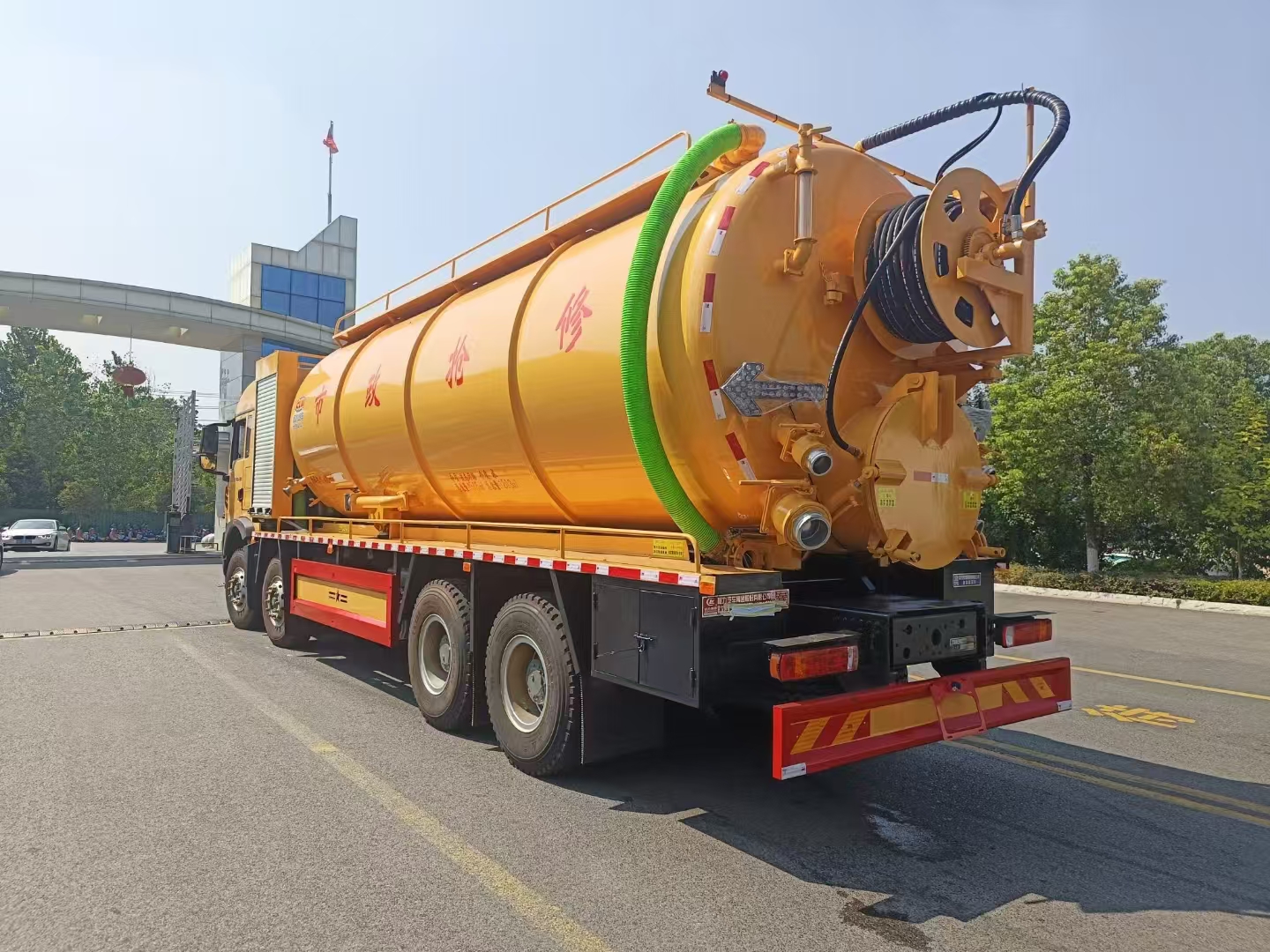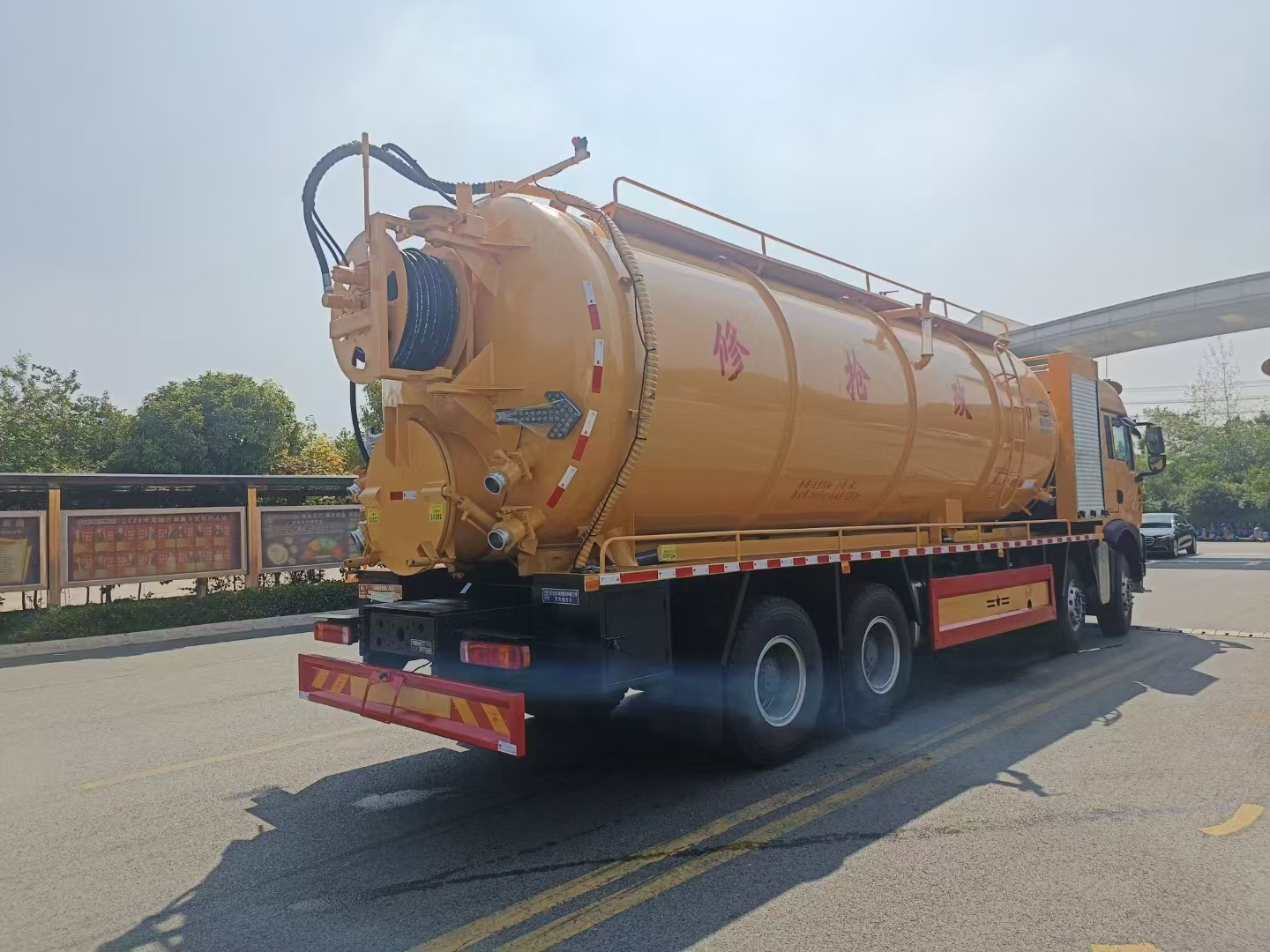 | 上裝配置 | 罐體總?cè)莘e約33立方,清水箱約10立方,其余為污水罐,加強(qiáng)大架,兩倉(cāng)互通,采用8mm碳鋼制作,吸污部分,副發(fā)采用420馬力配258水循環(huán)泵,8米吸污管,罐體兩側(cè)加寬平臺(tái)加護(hù)欄,后部開(kāi)一個(gè)600mm液壓開(kāi)啟排污口,一個(gè)150排污球閥,和一個(gè)100的排污球閥,100內(nèi)抽球閥,后部左右各一個(gè)箭頭燈,配品浮350流量,配100米內(nèi)徑25定制耐磨高壓管,帶卷盤(pán),卷盤(pán)液壓左右旋轉(zhuǎn)。 | ||