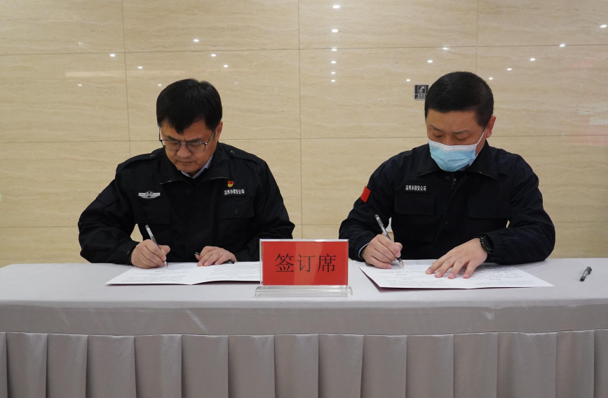 黨委書記、董事長付志欣同志與中層代表簽訂2023年度黨風(fēng)廉政建設(shè)目標責(zé)任書、2023年度安全生產(chǎn)目標責(zé)任書,與押運隊員代表簽訂持槍人員規(guī)范用槍承諾書。