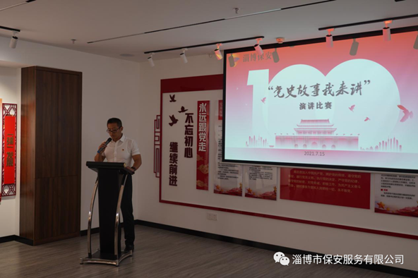 為慶祝中國共產(chǎn)黨成立100周年,回顧黨的百年奮進(jìn)歲月,引導(dǎo)干部職工學(xué)黨史、知黨恩、跟黨走,感悟黨的光輝歷程,傳承黨的優(yōu)良傳統(tǒng),進(jìn)一步推動黨史學(xué)習(xí)教育走深走實,淄博市保安服務(wù)有限公司黨委于7月15日下午舉辦“黨史故事我來講”專題演講比賽。